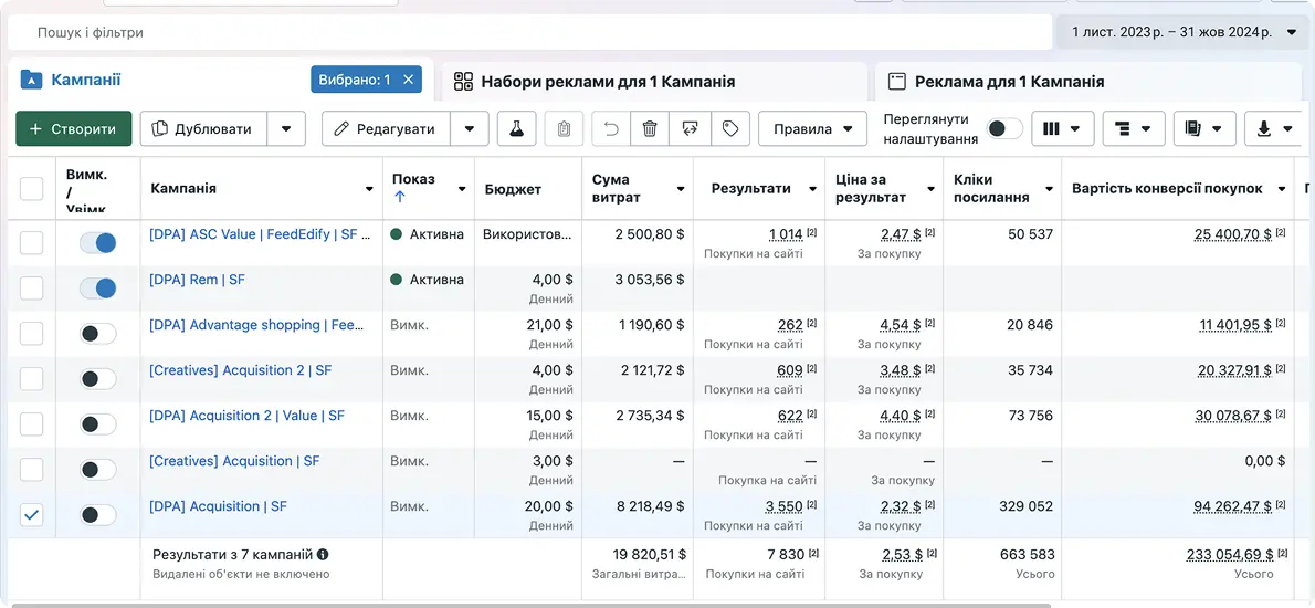 2. Запустити товарну рекламу в Facebook та Instagram, а також рекламні кампанії з креативами для сезонних товарів з високою маржою.